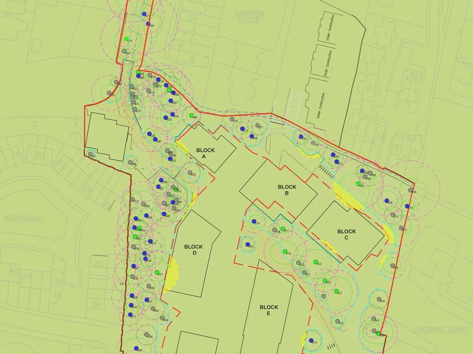 A prudent and experienced developer will commission a Full Tree Survey in accordance with BS 5837 for their proposed development in advance of any request from the local authority. This is best done in the first phase of the development alongside the topographical survey. This will identify any potential constraints and avert costly changes in the scheme layout. This will save a vast amount of time in the planning process as the local authority will more often than not, request this of an applicant in a further information request.